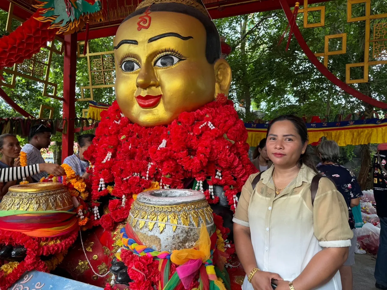 นอกจากนี้ ยังมี นางดารารัตน์ วายาดา อายุ 35 ปี เจ้าของสวนทุเรียน จ.นครราชสีมา นำทุเรียน 100 กิโลกรัม เงาะ 100 กิโลกรัม และลองกอง 100 กิโลกรัม มาถวายแก้บนกุมารทองเจ้าสัวเฮง หลังมาขอโชค กลับไปแล้วได้โชคกว่า 2 ล้านบาท ซึ่งถือเป็นครั้งที่สองที่ได้โชค โดยครั้งแรกก็ได้โชคหลักล้าน
