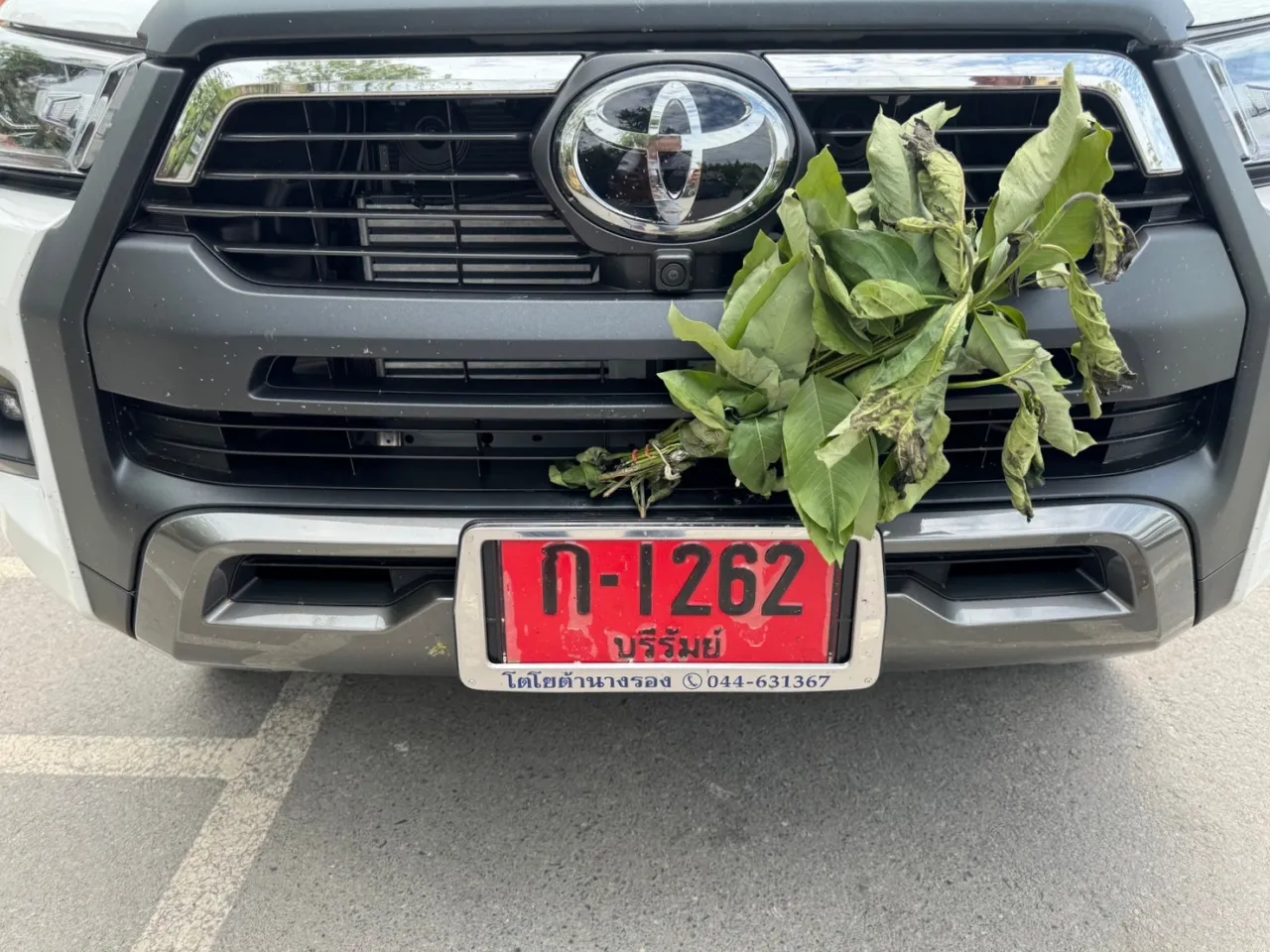 ขณะที่ชาวบ้านที่มาร่วมงานที่อาศรม ต่างส่องป้ายทะเบียนรถ เพื่อนำไปเสี่ยงโชคตามความเชื่อ คือ ก-1262