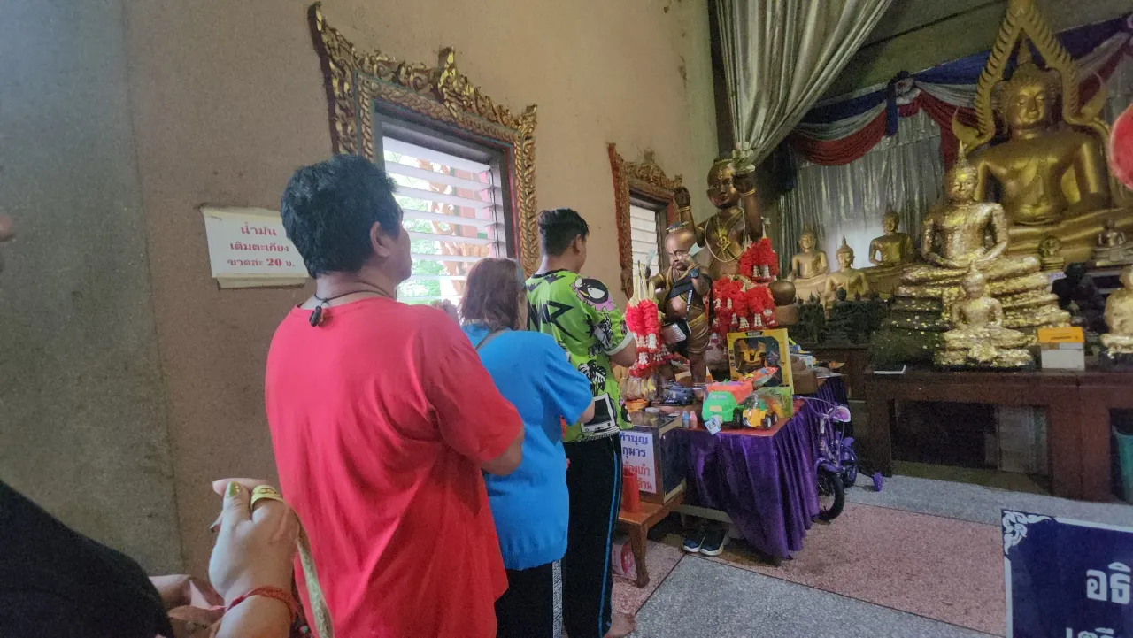 เมื่อเสร็จสิ้น ก็จูงมือแม่ขึ้นบนศาลาการเปรียญ โดยน้องมังกรบอกแม่ว่าให้พาขึ้นไปหา "กุมารน้องเก้าเลิฟเลิฟ" อยากไปเห็น อยากไปกระซิบข้างหูขอโชคให้กับแม่ น.ส.อัจจิมา จึงพาบุตรชายขึ้นไป พบว่ามีสาธุชนมาขอโชคขอลาภจากกุมารน้องเก้ามากมาย เลยรอคิว พร้อมกับนำธูปเทียนมาจุดบอกกล่าวขอโชคลาภ ให้น้องมังกร กระซิบที่ข้างหูน้องเก้า