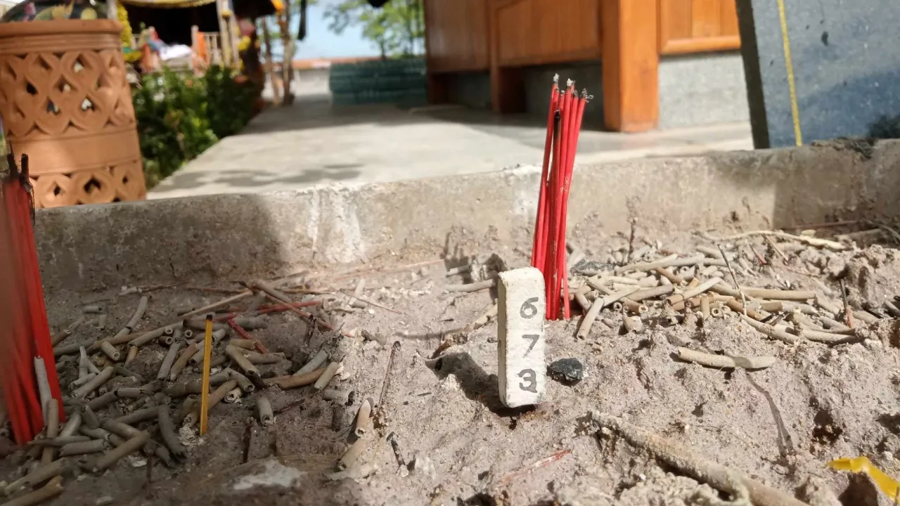 โดยพบว่า มีชาวบ้านจากทั่วสารทิศ กำลังตั้งโต๊ะหมู่บูชากราบไหว้ พร้อมจุดธูปอธิษฐานอย่างมีความหวัง เนื่องจากงวดที่ผ่านมา ชาวบ้านกลุ่มนี้ได้โชคจากการนำเลขก้านธูปที่จุดขอโชคลาภจากตาจันดี ยายสี สำหรับเลขธูปที่จุดในงวดนี้ ปรากฏเป็นเลข 673